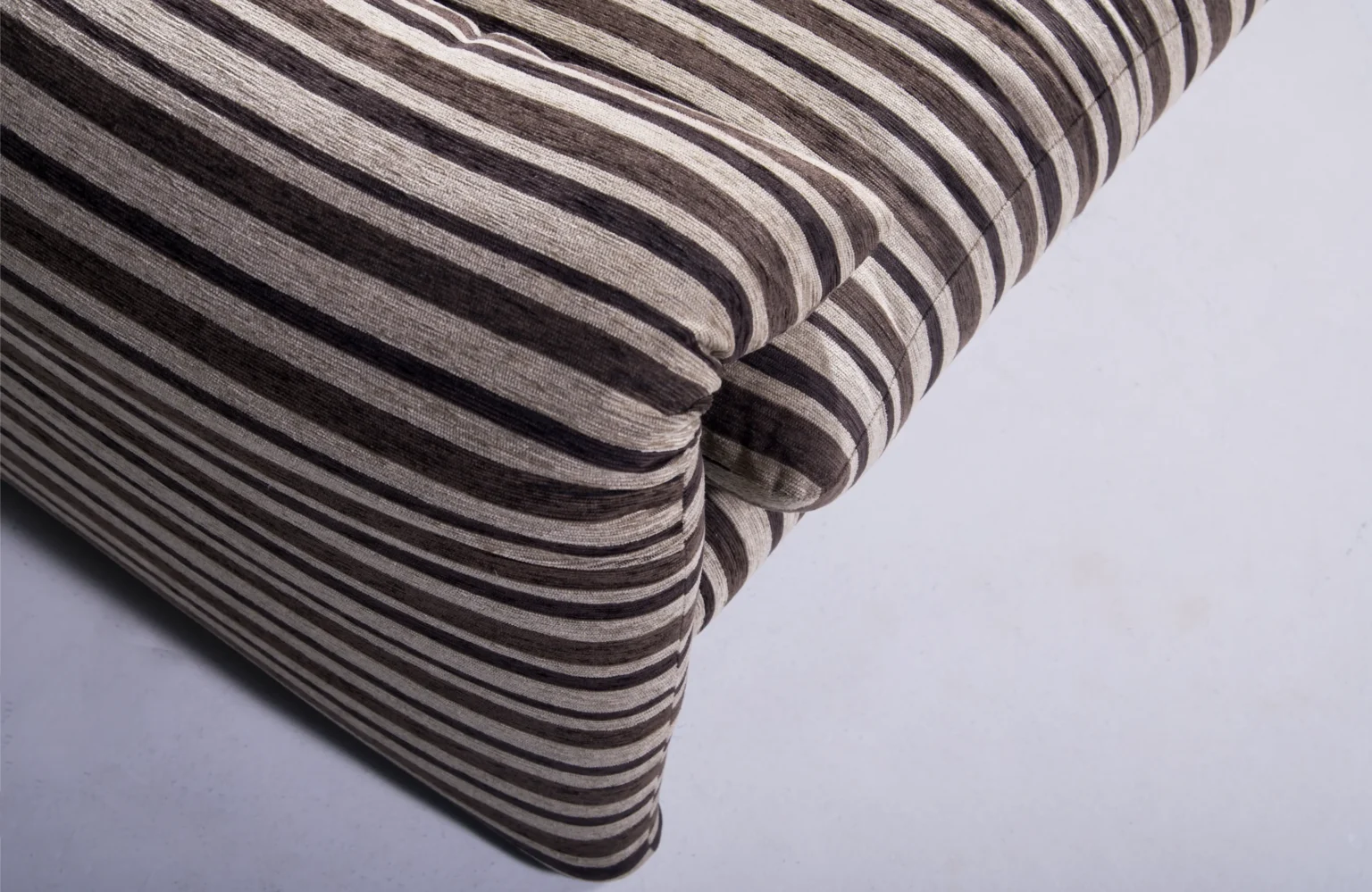Upholstered just one year ago, this piece boasts a luxurious striped fabric in a refined palette of brown, black, beige, and taupe, adding warmth and sophistication to any interior. The plush cushioning and sculptural form create a perfect balance between style and comfort, making it a true statement piece. A design classic that has stood the test of time, this Maralunga sofa is a must-have for those who appreciate iconic craftsmanship and unparalleled relaxation.